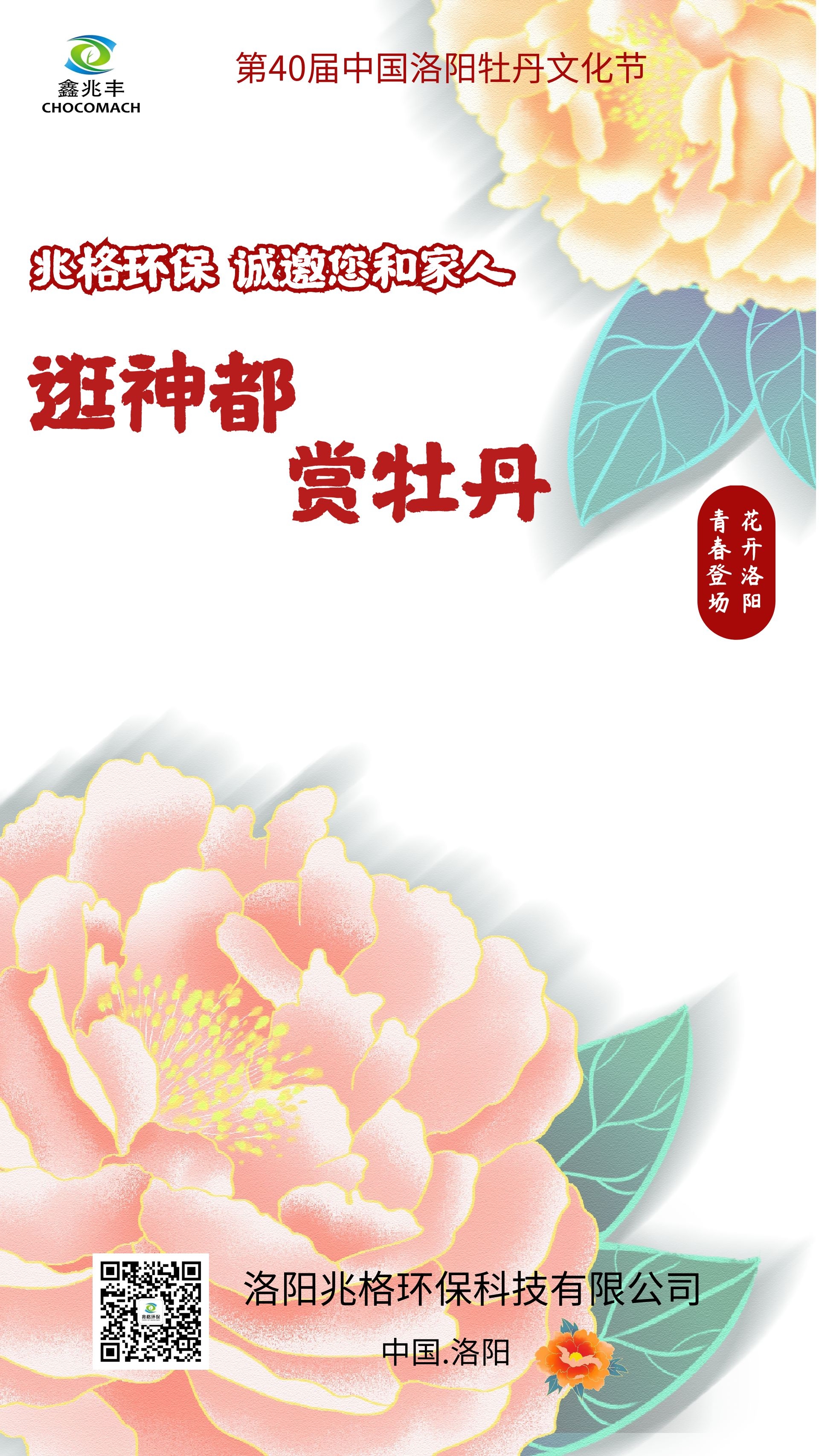 “國色天香,牡丹爭艷?;ㄩ_洛陽,青春登場”。值此2023年第40屆中國洛陽牡丹文化節(jié)開幕之際,洛陽兆格環(huán)保科技有限公司誠邀您及家人前往洛陽“逛神都,賞牡丹”。中國第四十屆中國洛陽牡丹文化節(jié)(原名:洛陽牡丹花會)