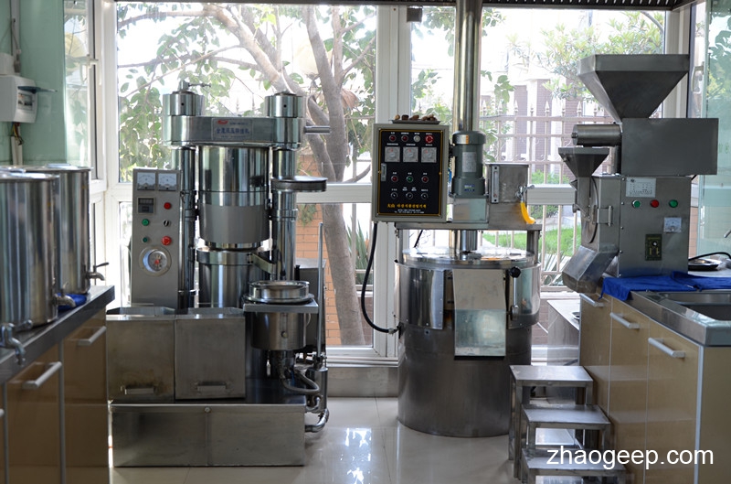 這張圖片是我們一個客戶購買6YY-220液壓榨油機小榨花生油的一個精品油坊。由這張圖片可以看出,使用古法小榨花生油的設(shè)備主要有以下幾種: