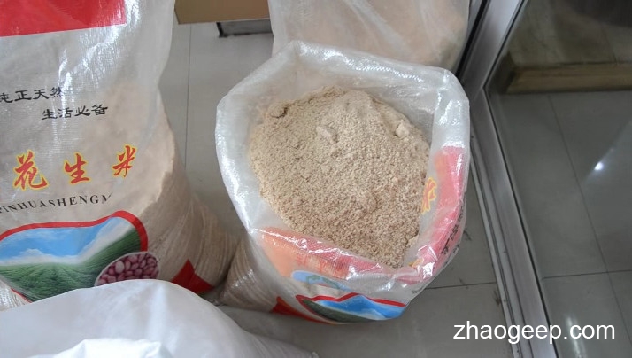 這個就是客戶前每天集中粉碎后的花生面,采用編織袋裝著。