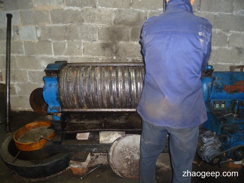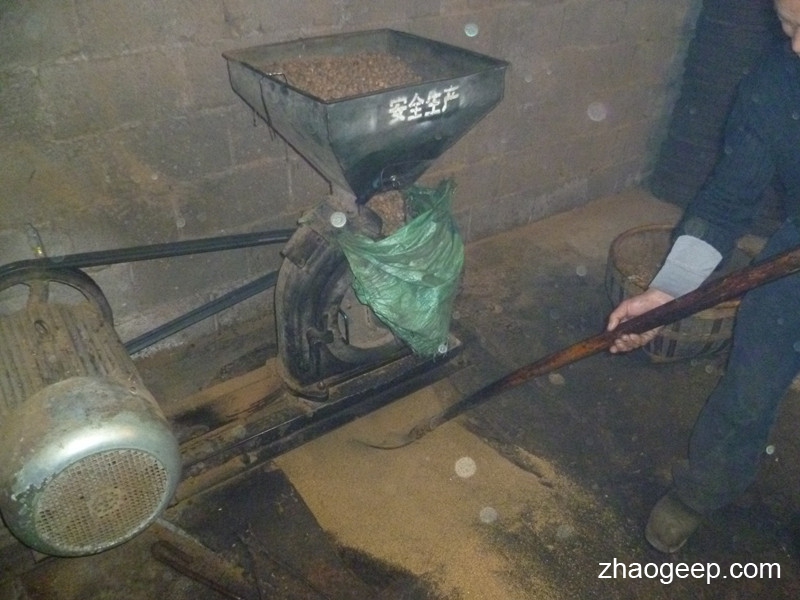 茶籽烘干后就開(kāi)始磨粉了。烘干要確保水分在10%以內(nèi),但也不能太低。原則上8%-10%之間。一般臥式炕烘干400斤茶籽大約3個(gè)小時(shí)左右。