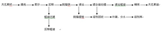 因此壓榨法和預(yù)榨浸出法是國內(nèi)月見草油生產(chǎn)最常用的方法。采用我公司生產(chǎn)的液壓榨油機進(jìn)行月見草油制取工藝如下: