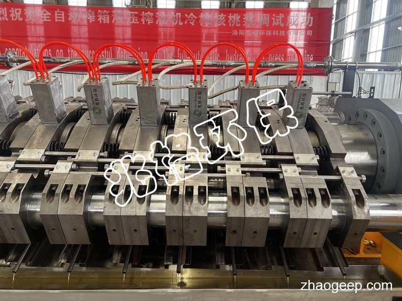 本次全自動(dòng)液壓榨油機(jī)作為核桃榨油機(jī)壓榨脫膜衣核桃漿,除了核桃仁脫膜衣和核桃仁調(diào)質(zhì)沒(méi)有體現(xiàn),其它從脫膜衣核桃仁粗磨醬、核桃漿細(xì)磨、核桃漿均質(zhì)、核桃漿泵進(jìn)料、核桃漿壓榨出油等全部采用PLC自動(dòng)化控制,無(wú)需使用人工干預(yù),無(wú)論是工藝層面還是設(shè)備層面均取得了成功。這標(biāo)志著兆格環(huán)保自主研發(fā)的YZYW全自動(dòng)液壓榨油機(jī)正式進(jìn)入核桃漿冷榨市場(chǎng)。